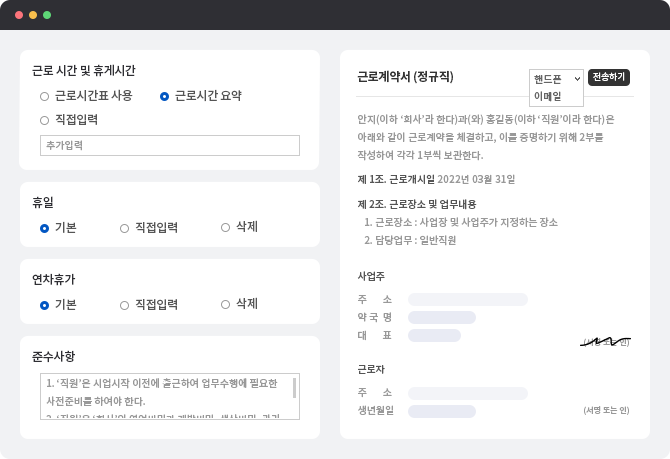 급여설계 정보를 기반으로 근로계약서 자동생성